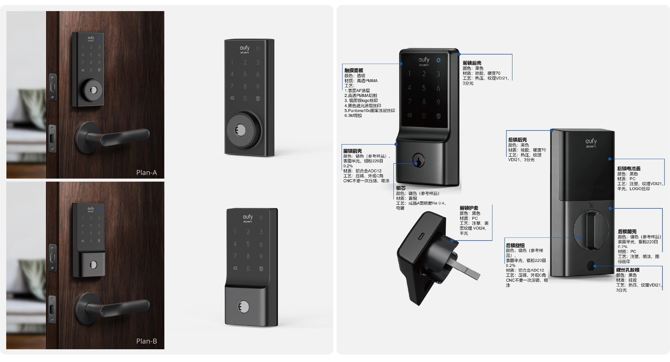 这是一款为注重性价比,精明实用消费价值观的人群,推出的尺寸小巧适配各类门框且易安装的智能门锁,保留核心功能和体验的前提下,其售价仅为eufy中端门锁价格的一半。设计上通过形状、CMF、拆件、外观质量标准调整,助力产品成为亚马逊北美市场前10的门锁。